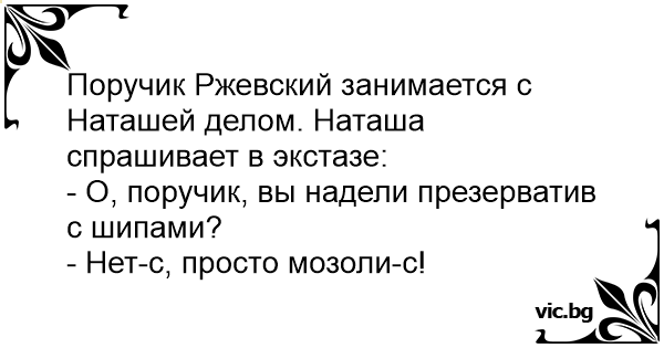 - О, поручик, вы надели пpeзepbatиb с шипами?