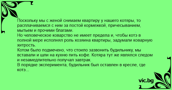 Поскольку мы с женой снимаем квартиру у нашего котяры, то расплачиваемся с ним за постой кормежкой, причесыванием, мытьем и прочими благами.