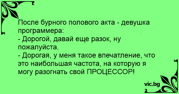 - Дорогая, у меня такое впечатление, что это наибольшая частота, на которую я могу разогнать свой ПРОЦЕССОР!