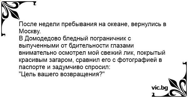 "Цель вашего возвращения?"