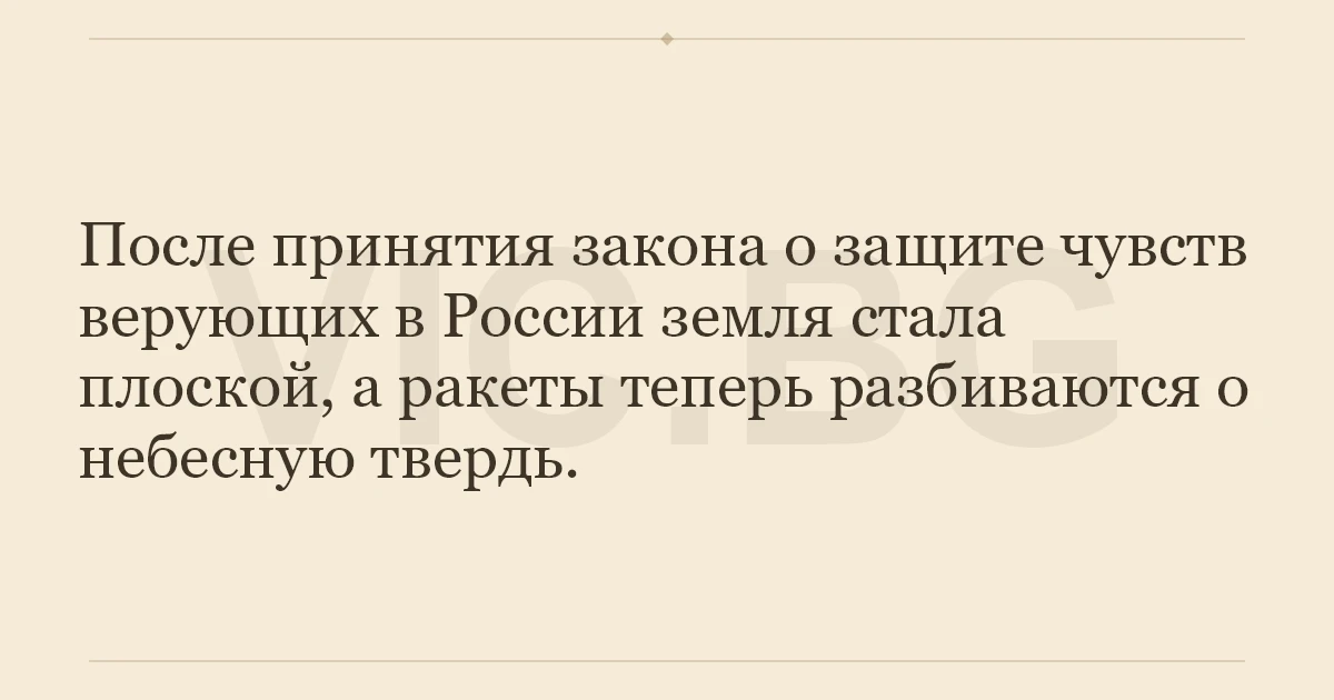 После принятия закона о защите чувств верующих в России земля стала плоской, а ракеты теперь разбиваются о небесную твердь.
