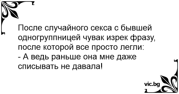 После случайного cekca с бывшей одногруппницей чувак изрек фразу, после которой все просто легли: