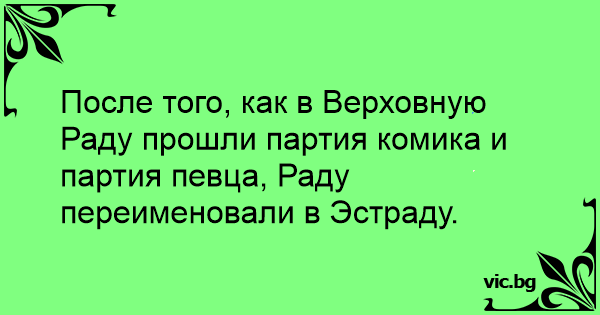 После того, как в Верховную Раду прошли партия комика и партия певца, Раду переименовали в Эстраду.