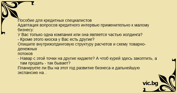 Пособие для кредитных специалистов Адаптация вопросов кредитного интервью применительно к малому бизнесу: