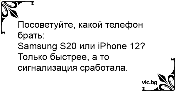 Samsung S20 или iPhone 12? Только быстрее, а то сигнализация сработала.