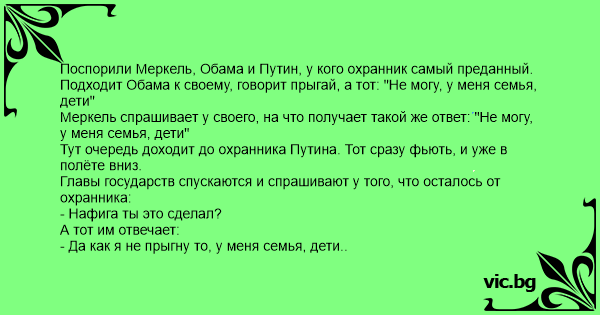 Поспорили Меркель, Обама и Путин, у кого охранник самый преданный.