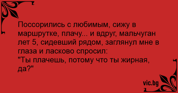 Поссорились с любимым, сижу в маршрутке, плачу... и вдруг, мальчуган лет 5, сидевший рядом, заглянул мне в глаза и ласково спросил: