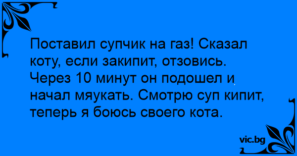 Поставил супчик на газ! Сказал коту, если закипит, отзовись. Через 10 минут он подошел и начал мяукать. Смотрю суп кипит, теперь я боюсь своего кота.