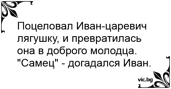 Поцеловал Иван-царевич лягушку, и превратилась она в доброго молодца.
