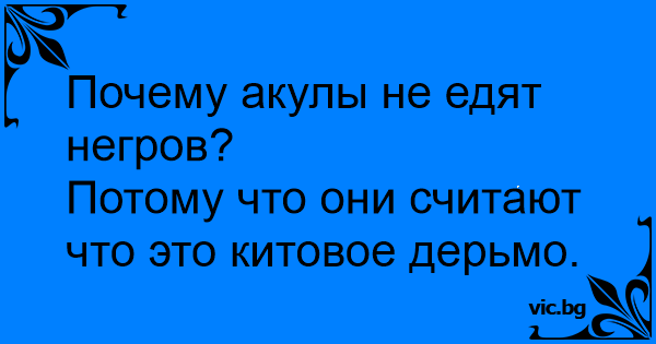 - Защо акулите не ядат негри? - Защото ги мислят за изпражнения на кит