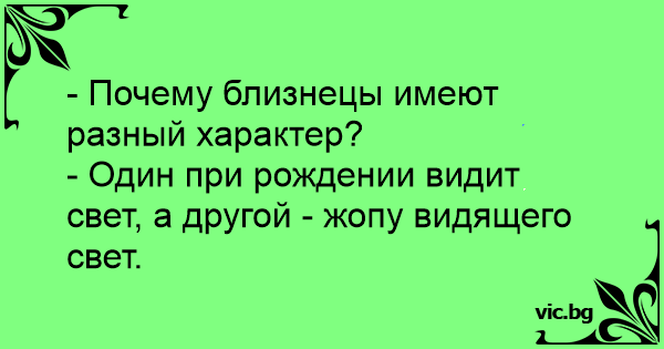- Один при рождении видит свет, а другой - жопу видящего свет.