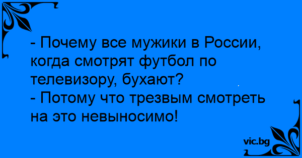 - Почему все мужики в России, когда смотрят футбол по телевизору, бухают?