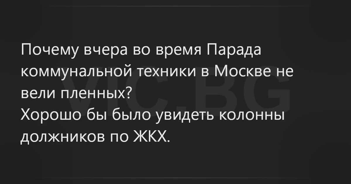 Почему вчера во время Парада коммунальной техники в Москве не вели пленных? Хорошо бы было увидеть колонны должников по ЖКХ.