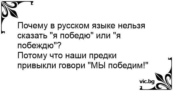 Потому что наши предки привыкли говори "МЫ победим!"
