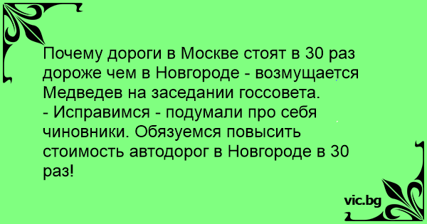 - Исправимся - подумали про себя чиновники. Обязуемся повысить стоимость автодорог в Новгороде в 30 раз!