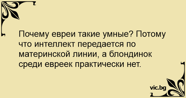 Почему евреи такие умные? Потому что интеллект передается по материнской линии, а блондинок среди евреек практически нет.