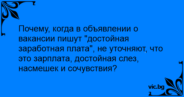 Почему, когда в объявлении о вакансии пишут "достойная заработная плата", не уточняют, что это зарплата, достойная слез, насмешек и сочувствия?