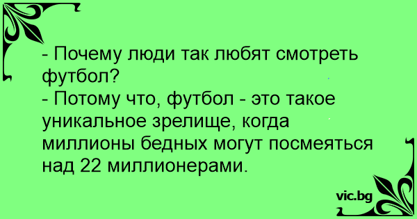 - Потому что, футбол - это такое уникальное зрелище, когда миллионы бедных могут посмеяться над 22 миллионерами.
