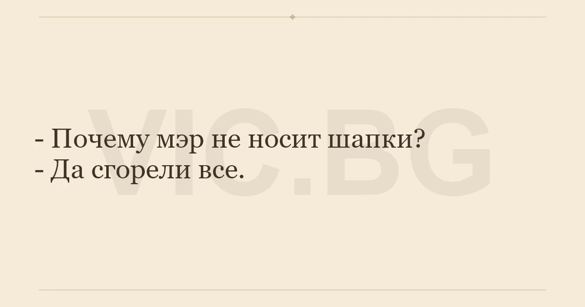 - Почему мэр не носит шапки? - Да сгорели все.