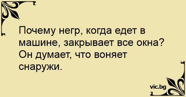 Почему негр, когда едет в...