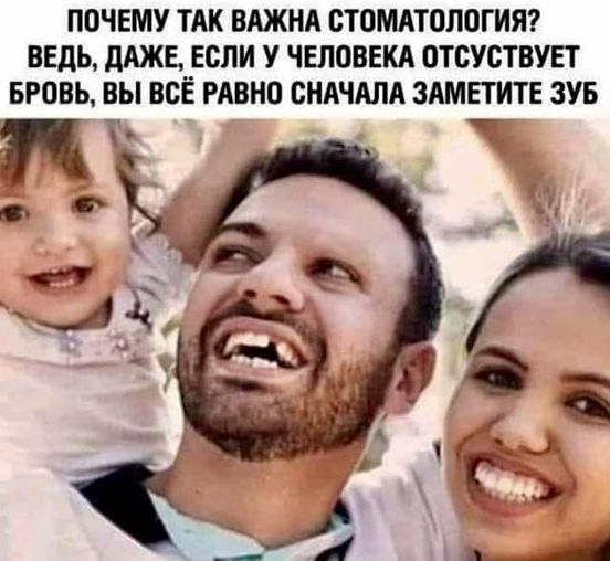 Почему так важна стоматология? Ведь, даже, если у человека отсуствует бровь, вы всё равно сначала заметите зуб