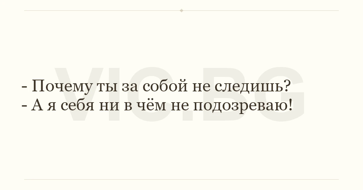 - Почему ты за собой не следишь? - А я себя ни в чём не подозреваю!