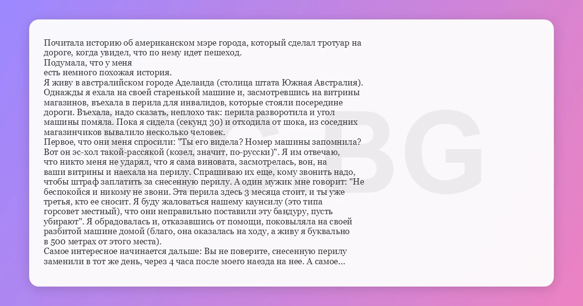 разбитую машину об их неправильные перила. :) Шутка, конечно. Хотя,