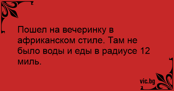 Пошел на вечеринку в африканском стиле. Там не было воды и еды в радиусе 12 миль.