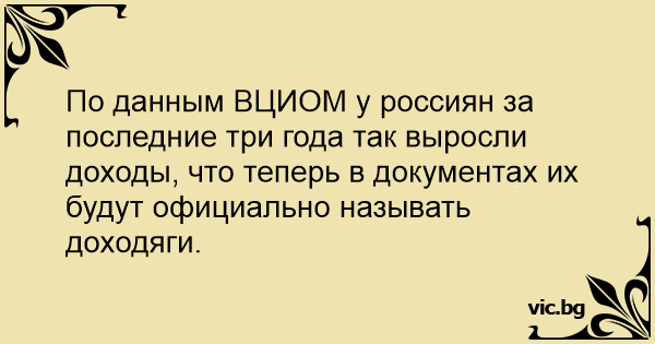 По данным ВЦИОМ у россиян за последние три года так выросли доходы, что теперь в документах их будут официально называть доходяги.