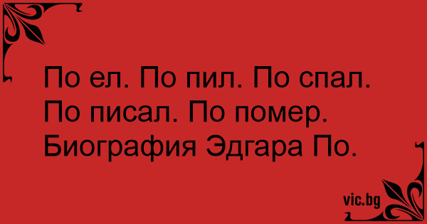 Похапнал. Попийнал. Поспал. Пописал. Поумрял. Биографията на Едгард По
