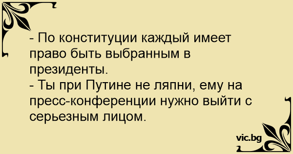 - Ты при Путине не ляпни, ему на пресс-конференции нужно выйти с серьезным лицом.