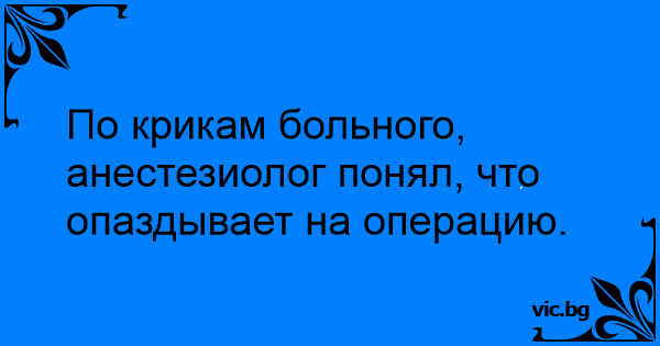 По крикам больного, анестезиолог понял, что опаздывает на операцию.
