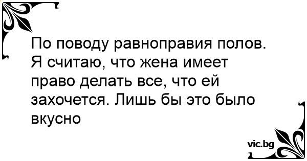 По поводу равноправия полов. Я считаю, что жена имеет право делать все, что ей захочется. Лишь бы это было вкусно