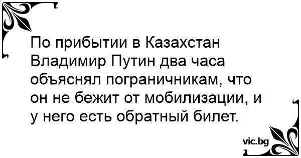 По прибытии в Казахстан Владимир Путин два часа объяснял пограничникам, что он не бежит от мобилизации, и у него есть обратный билет.
