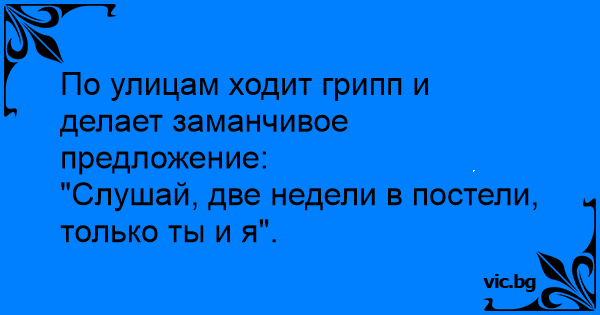 Грипът обикаля навън с романтични предложения:- "Виж сега, две седмици в леглото, само ти и аз..."