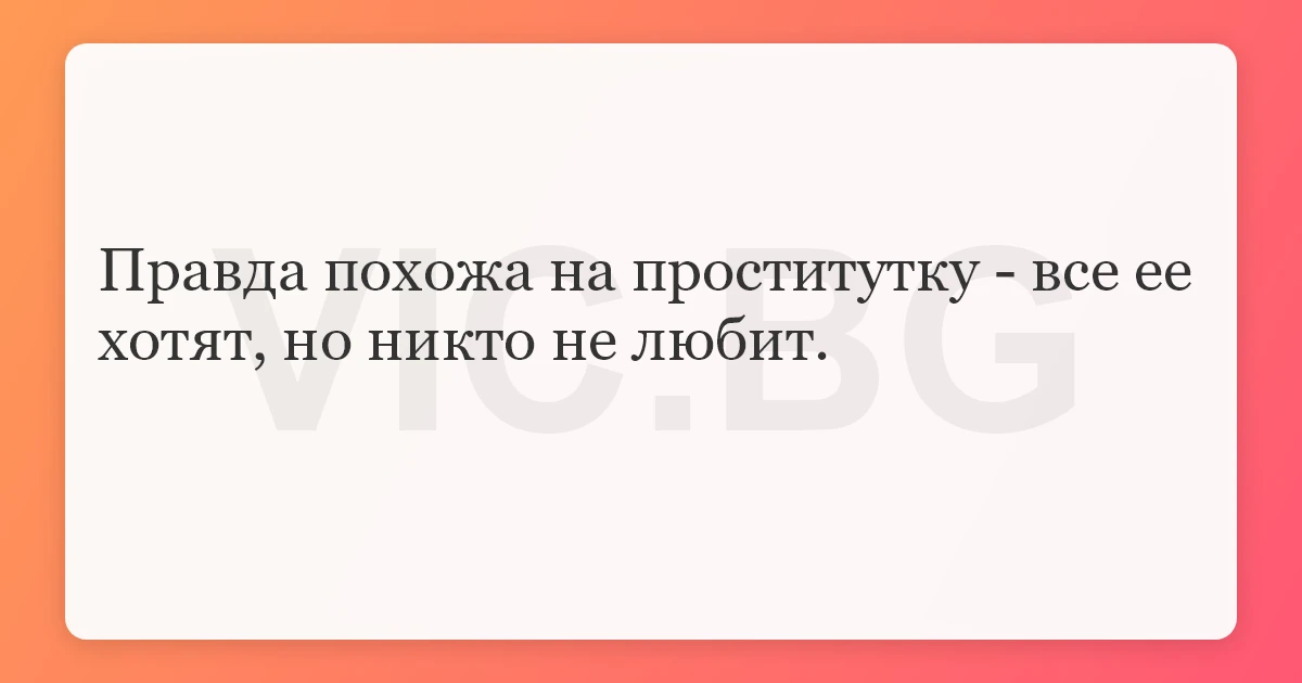 Правда похожа на проститутку - все ее хотят, но никто не любит.