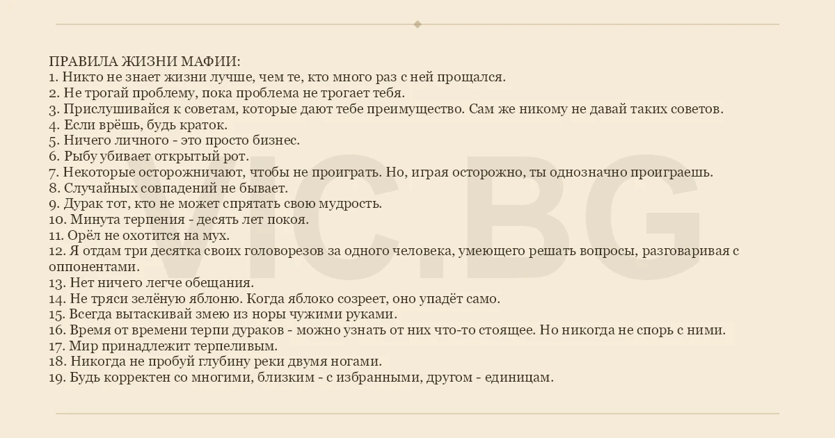ПРАВИЛА ЖИЗНИ МАФИИ: