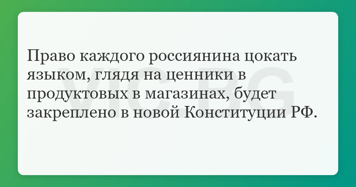 Право каждого россиянина цокать языком, глядя на ценники в продуктовых в магазинах, будет закреплено в новой Конституции РФ.
