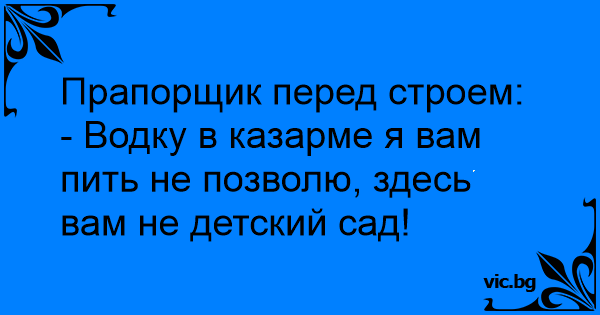 - Водку в казарме я вам пить не позволю, здесь вам не детский сад!