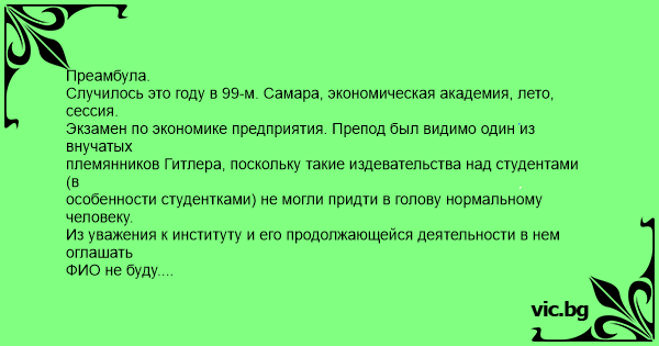 Экзамен по экономике предприятия. Препод был видимо один из внучатых