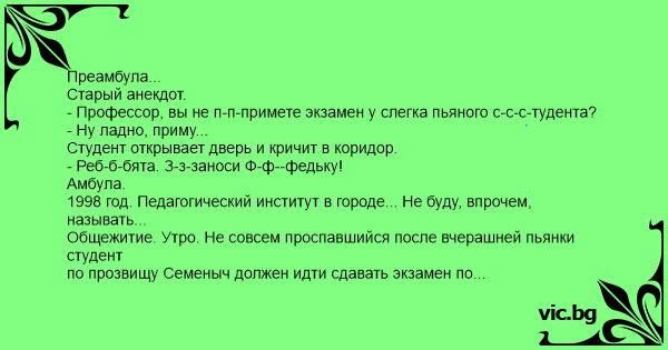 - Профессор, вы не п-п-примете экзамен у слегка пьяного с-с-с-тудента?