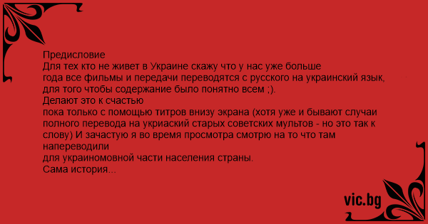 Предисловие Для тех кто не живет в Украине скажу что у нас уже больше года все фильмы и передачи переводятся с русского на украинский язык, для того чтобы содержание было понятно всем ;).
