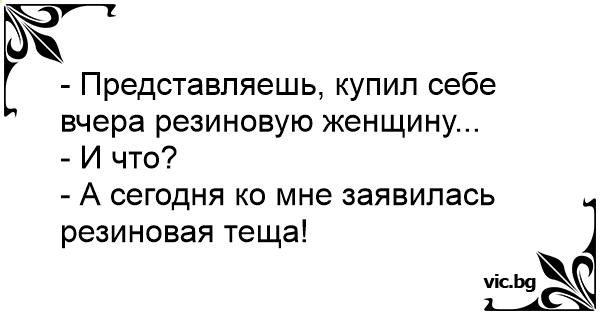 - А сегодня ко мне заявилась резиновая теща!