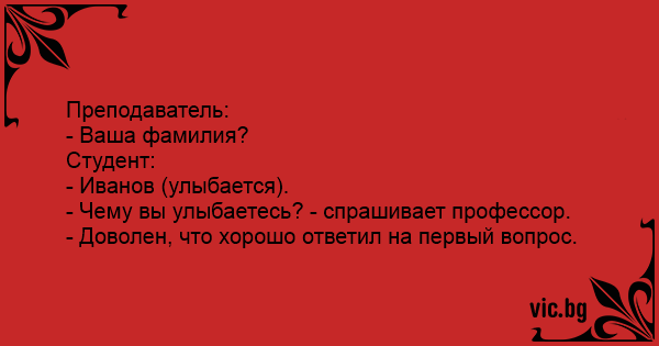 - Чему вы улыбаетесь? - спрашивает профессор.