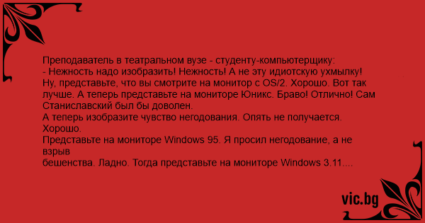 Представьте на мониторе Windows 95. Я просил негодование, а не взрыв