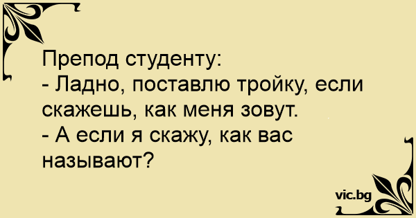 - Ладно, поставлю тройку, если скажешь, как меня зовут.