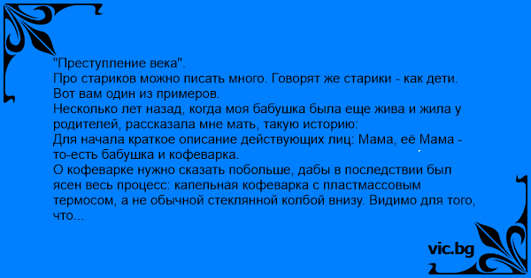 Для начала краткое описание действующих лиц: Мама, её Мама - то-есть бабушка и кофеварка.