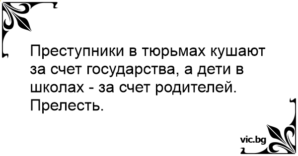 Преступники в тюрьмах кушают за счет государства, а дети в школах - за счет родителей. Прелесть.