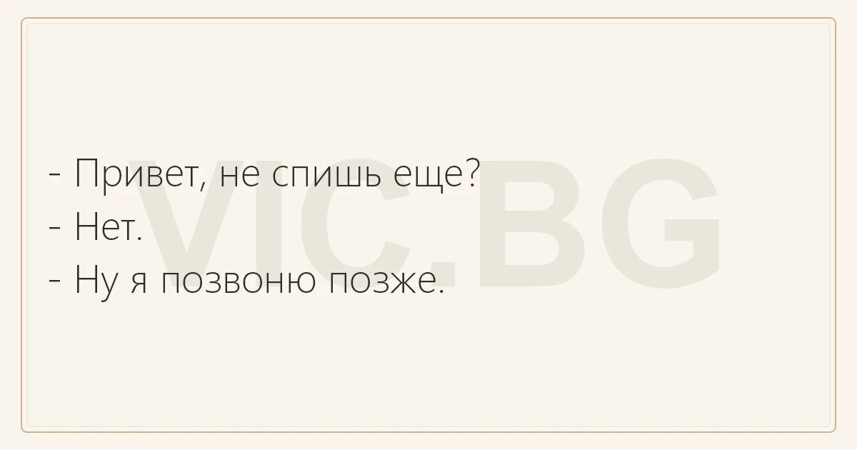 - Привет, не спишь еще? - Нет. - Ну я позвоню позже.