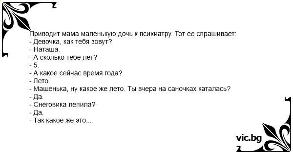 Приводит мама маленькую дочь к психиатру. Тот ее спрашивает: